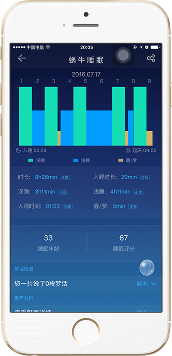 可視化的睡眠報告,幫助您快速了解睡眠質量。